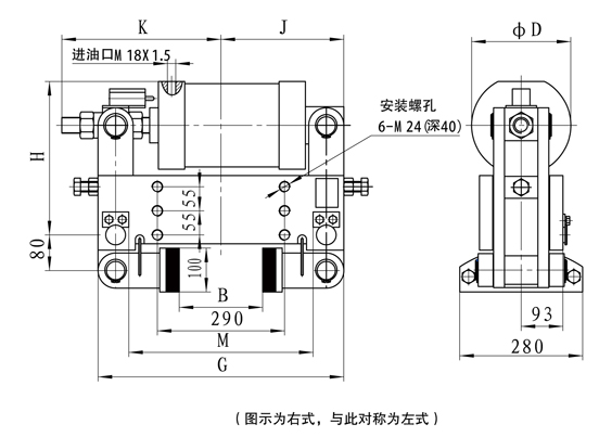 額定夾緊力為:50KN,輪寬160,左式配置,其訂貨標記為YLBZ25-160-左;右式配置為YLBZ25-160-右。